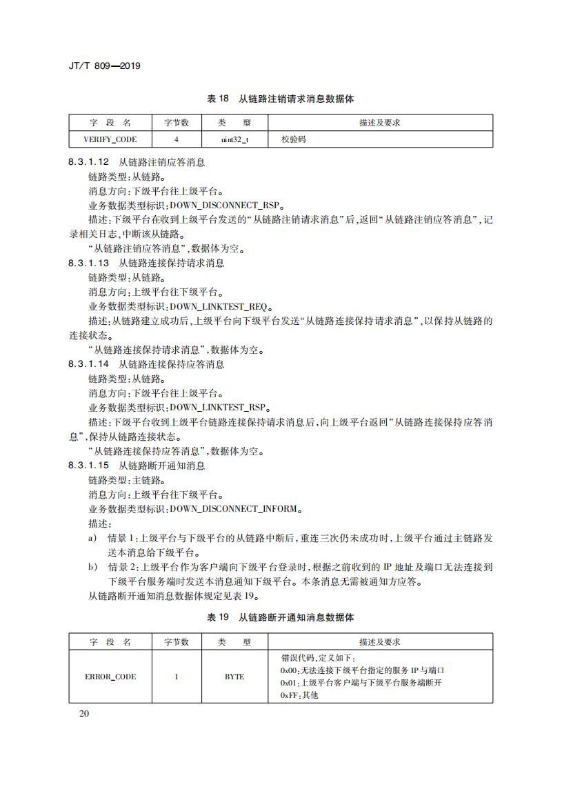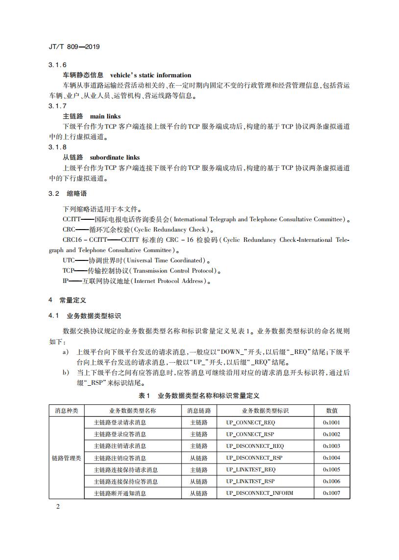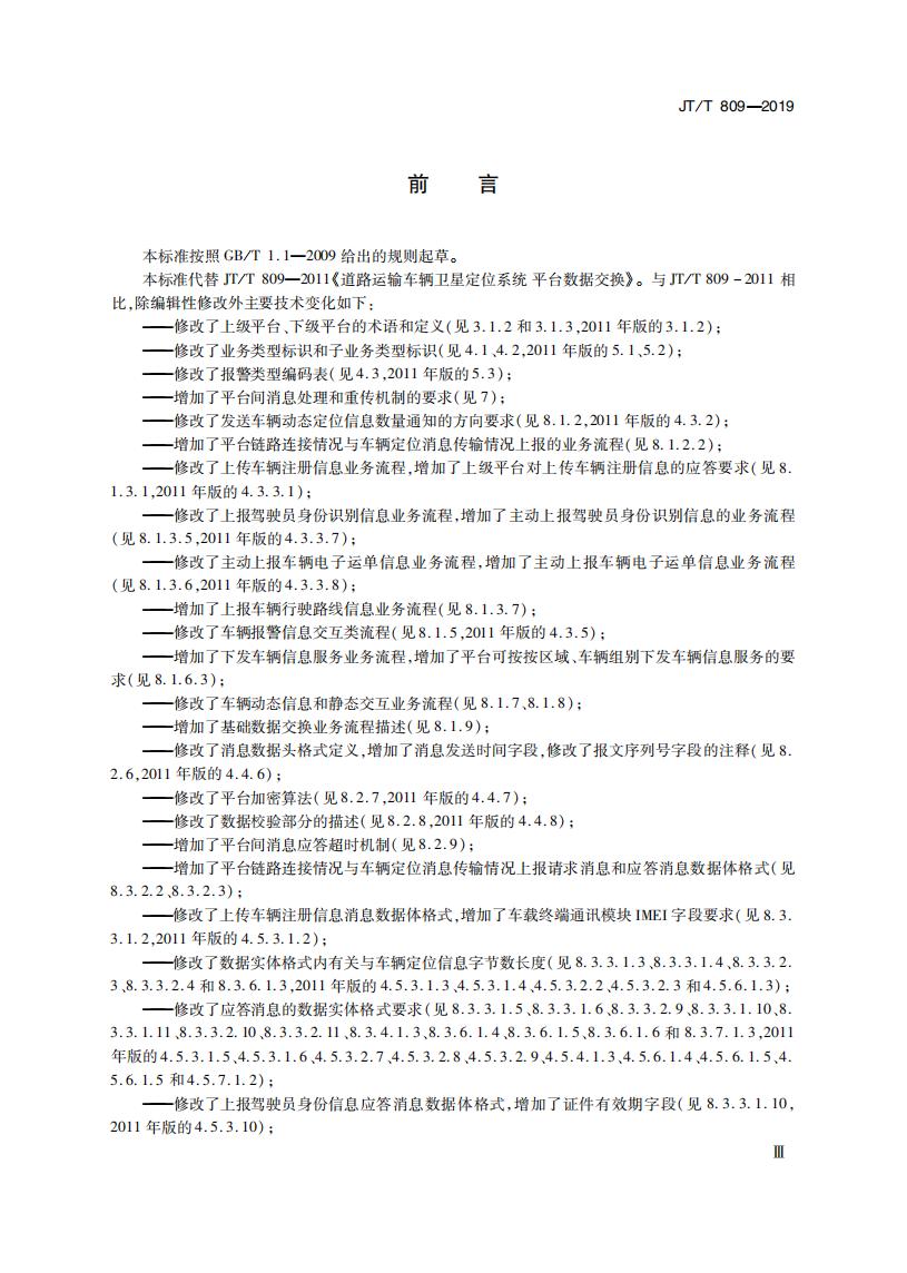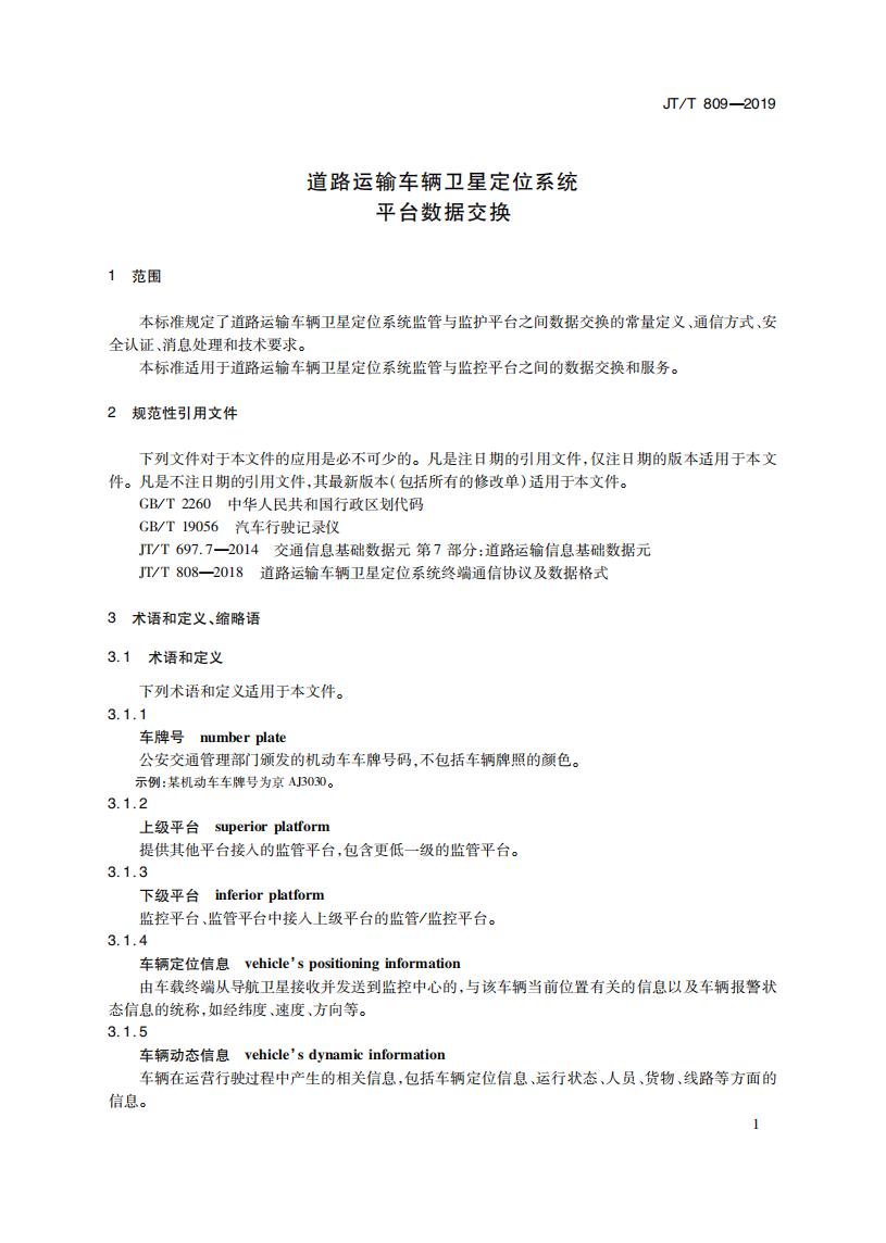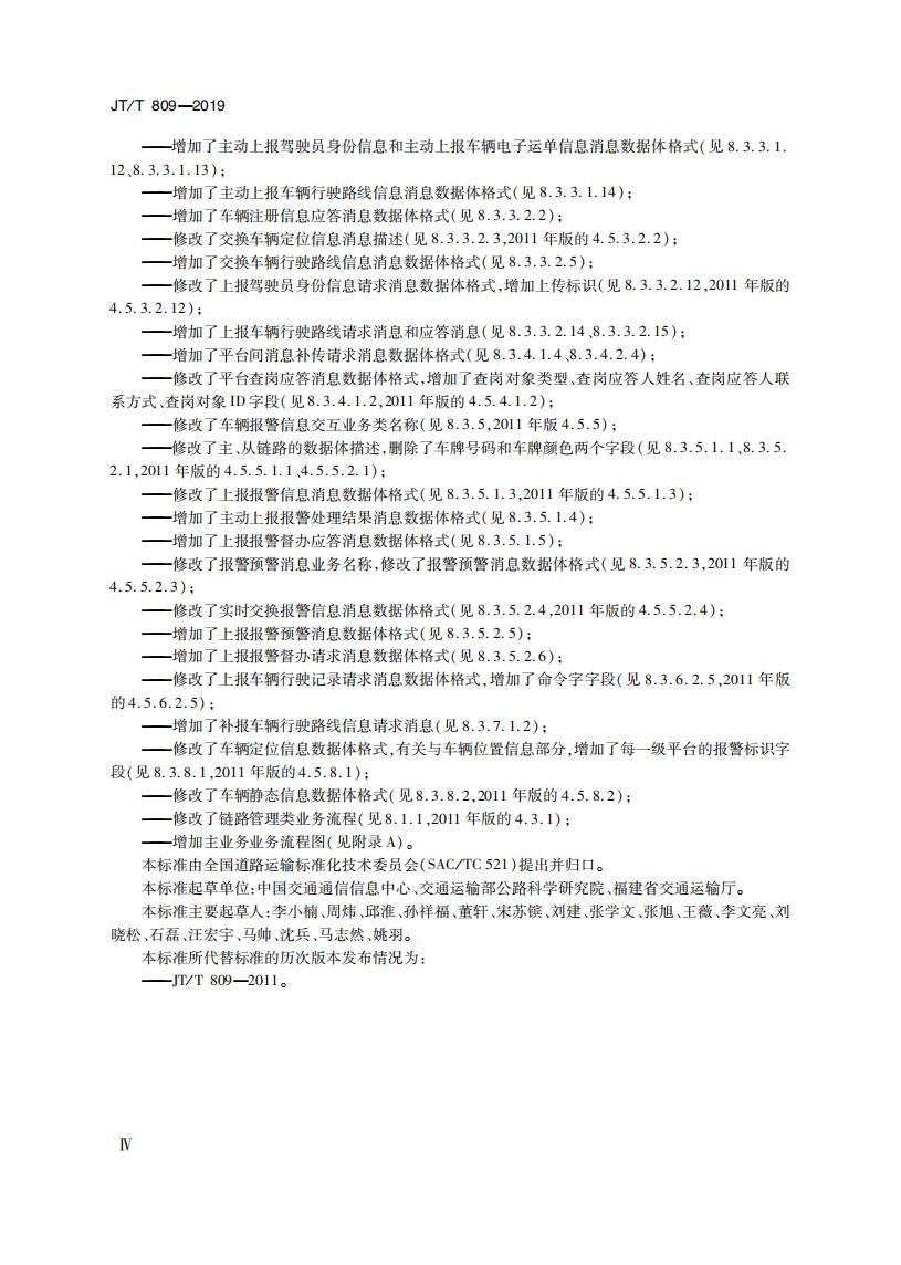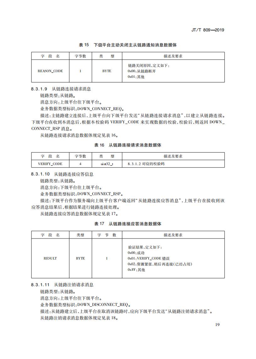 JTT809-2019 道路運(yùn)輸車輛衛(wèi)星定位系統(tǒng)(平臺(tái)數(shù)據(jù)交換)