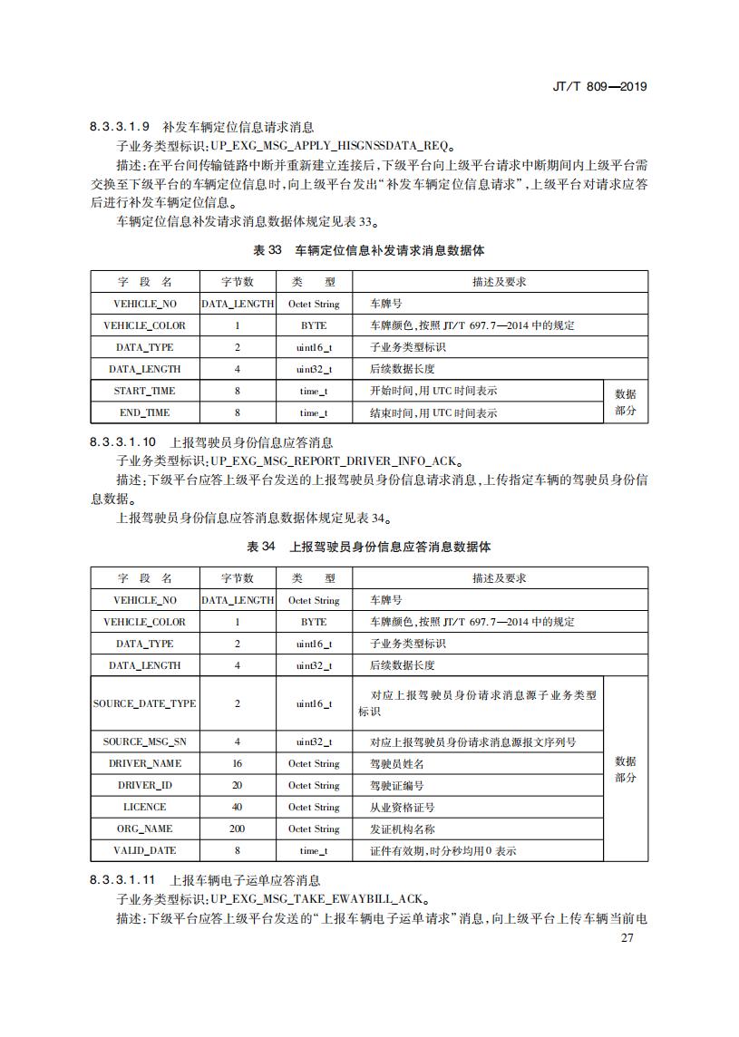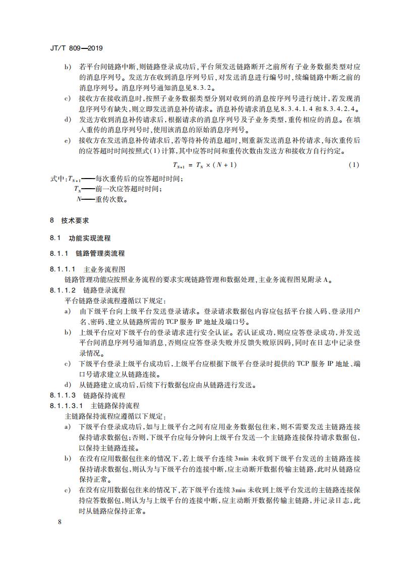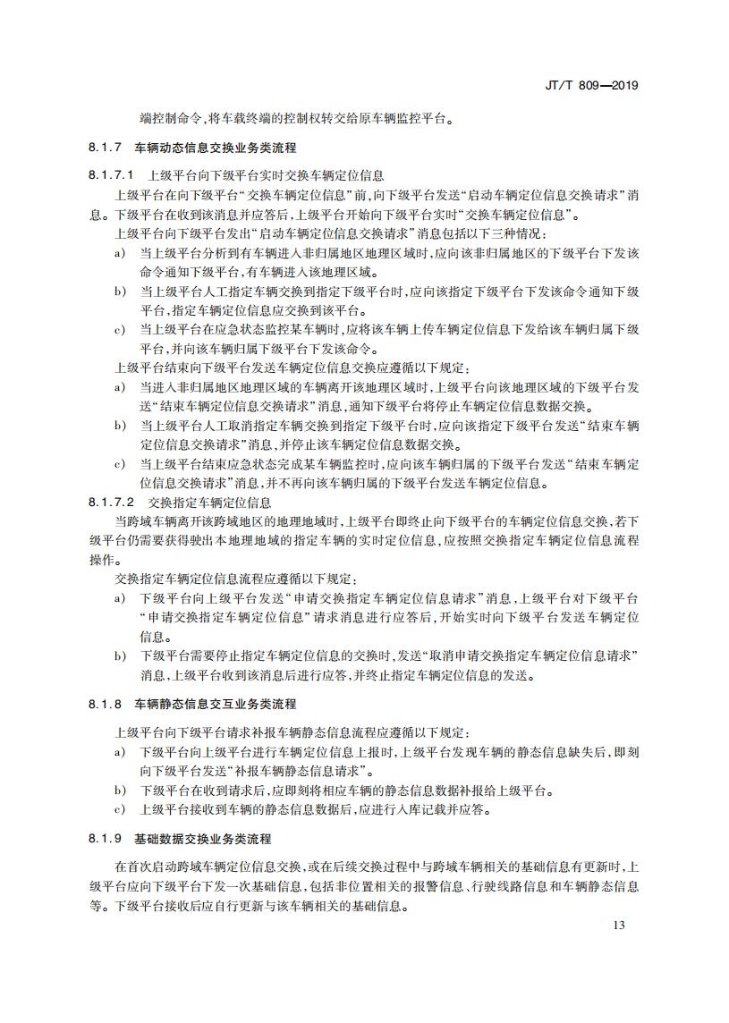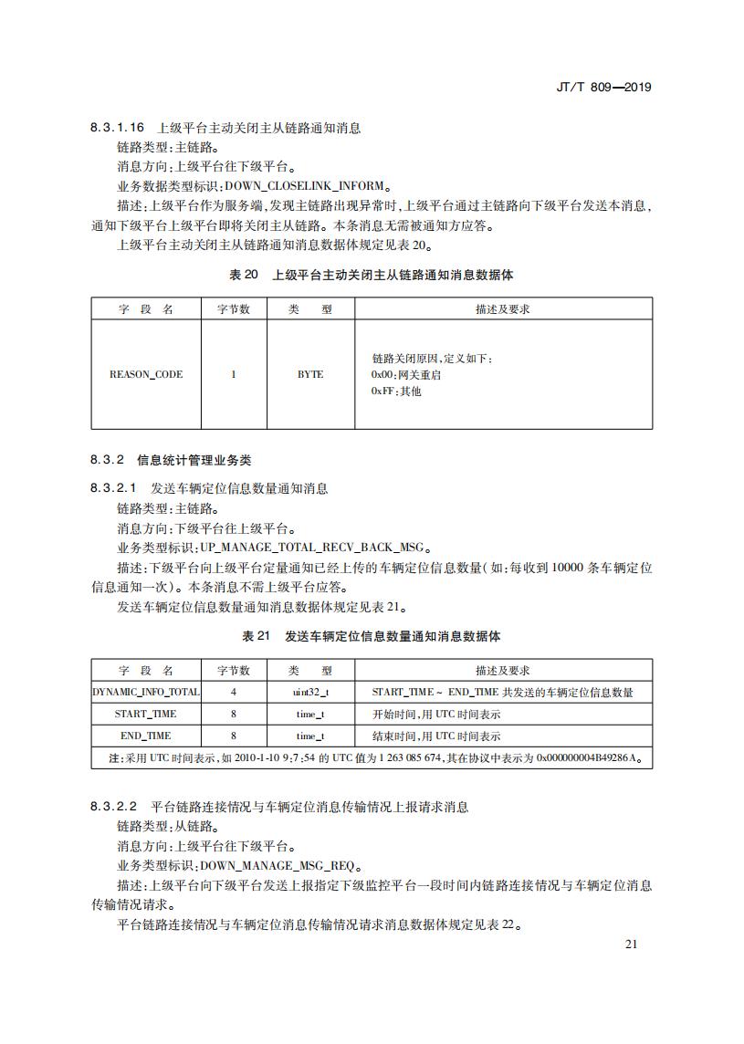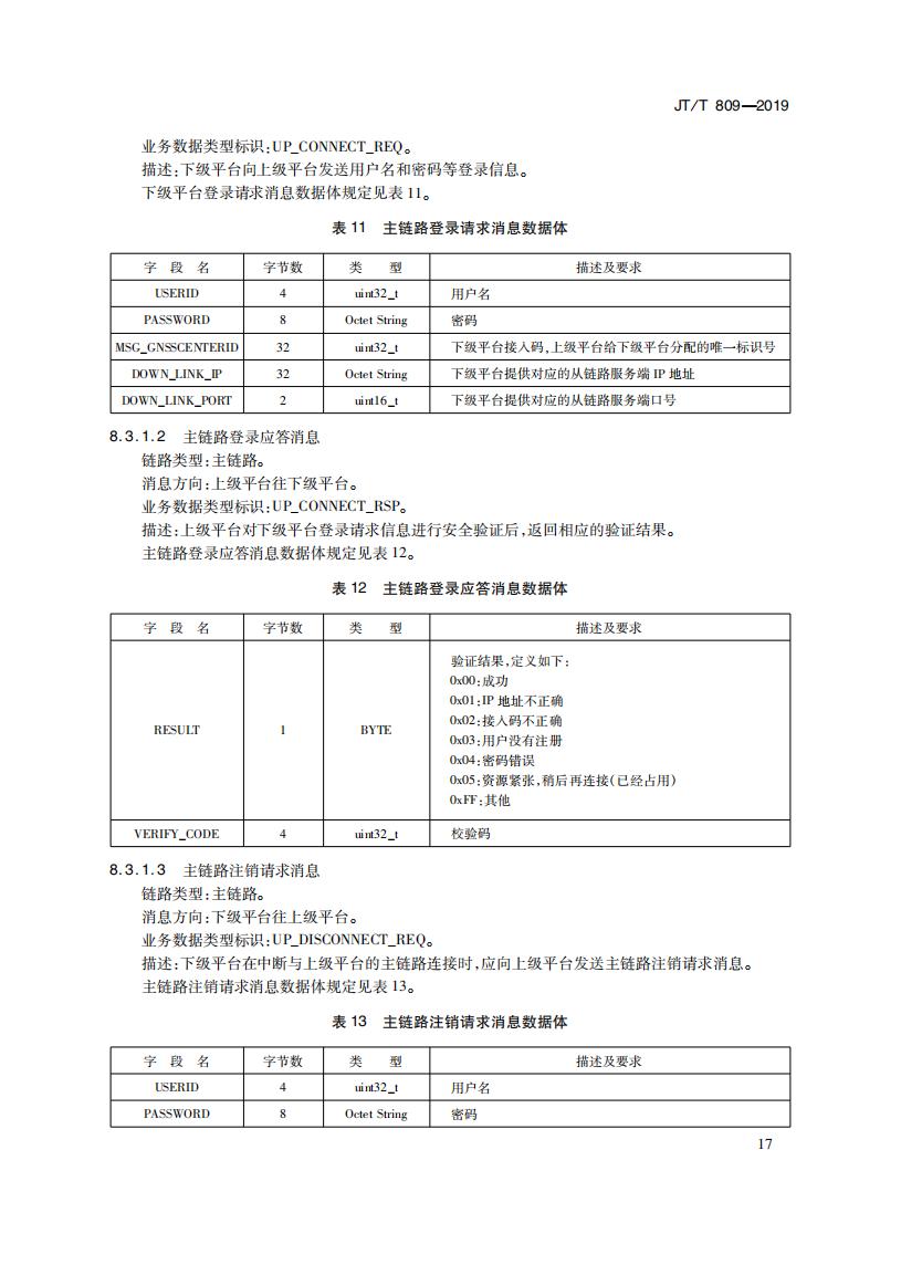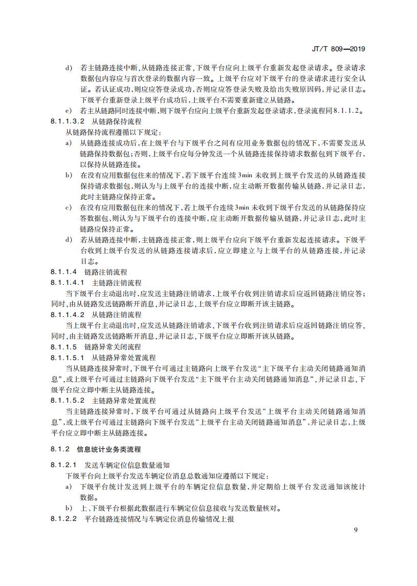 JTT809-2019 道路運(yùn)輸車輛衛(wèi)星定位系統(tǒng)(平臺(tái)數(shù)據(jù)交換)