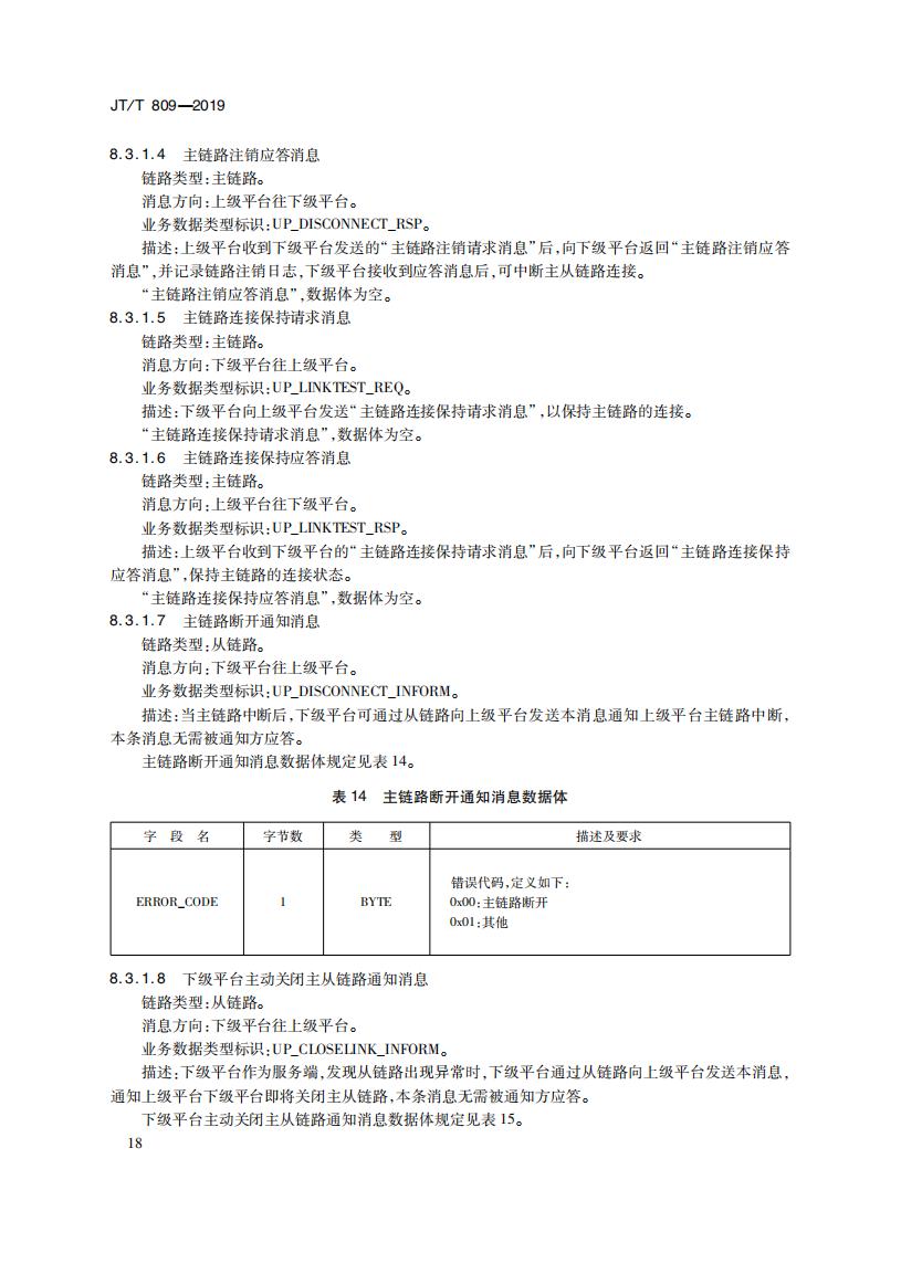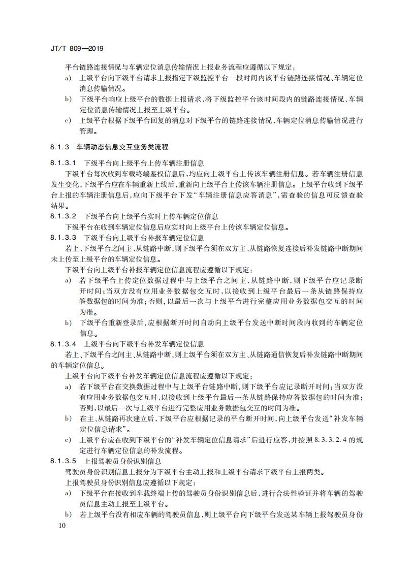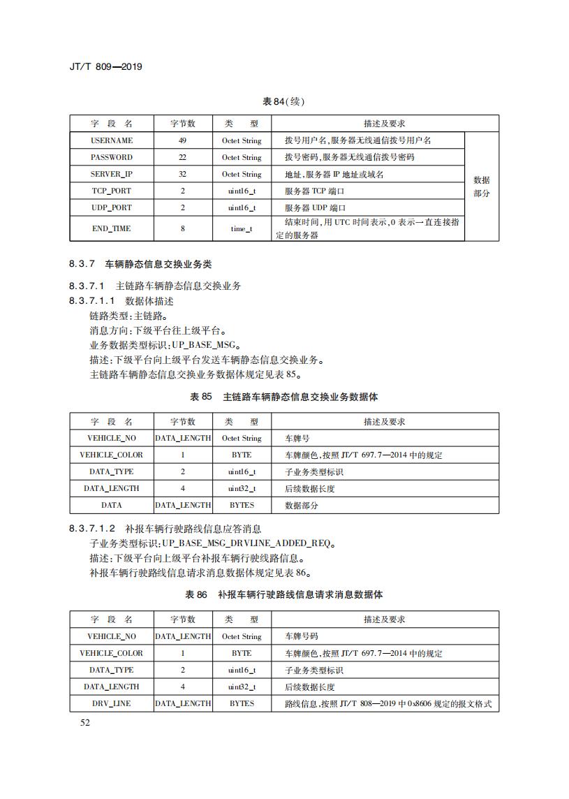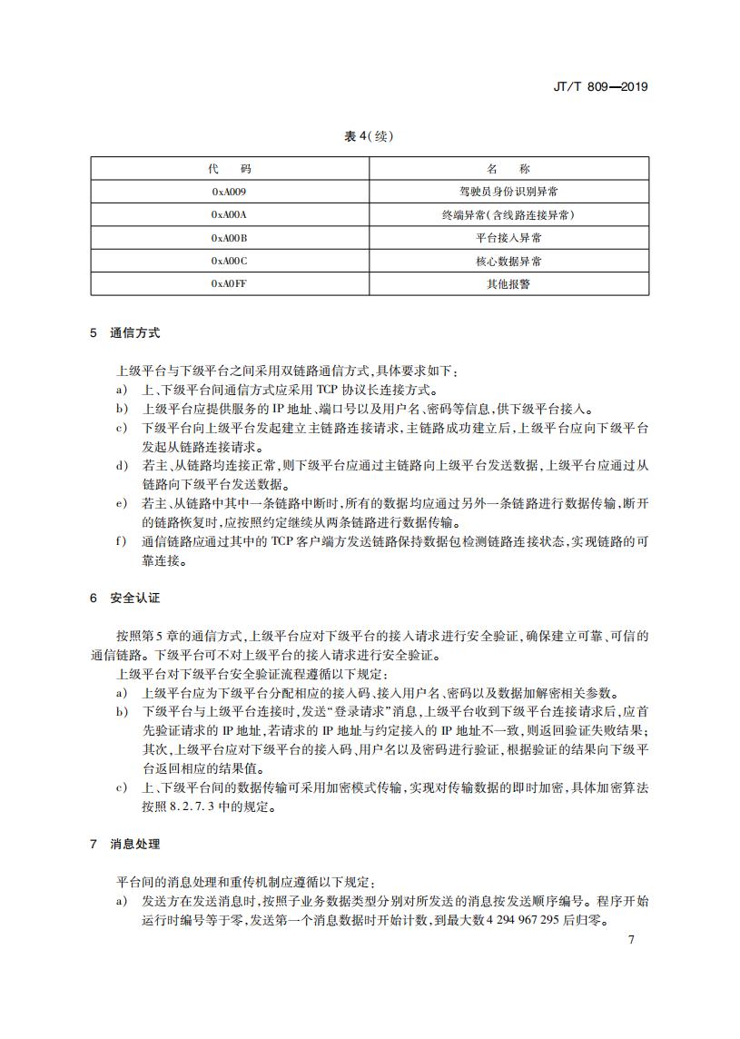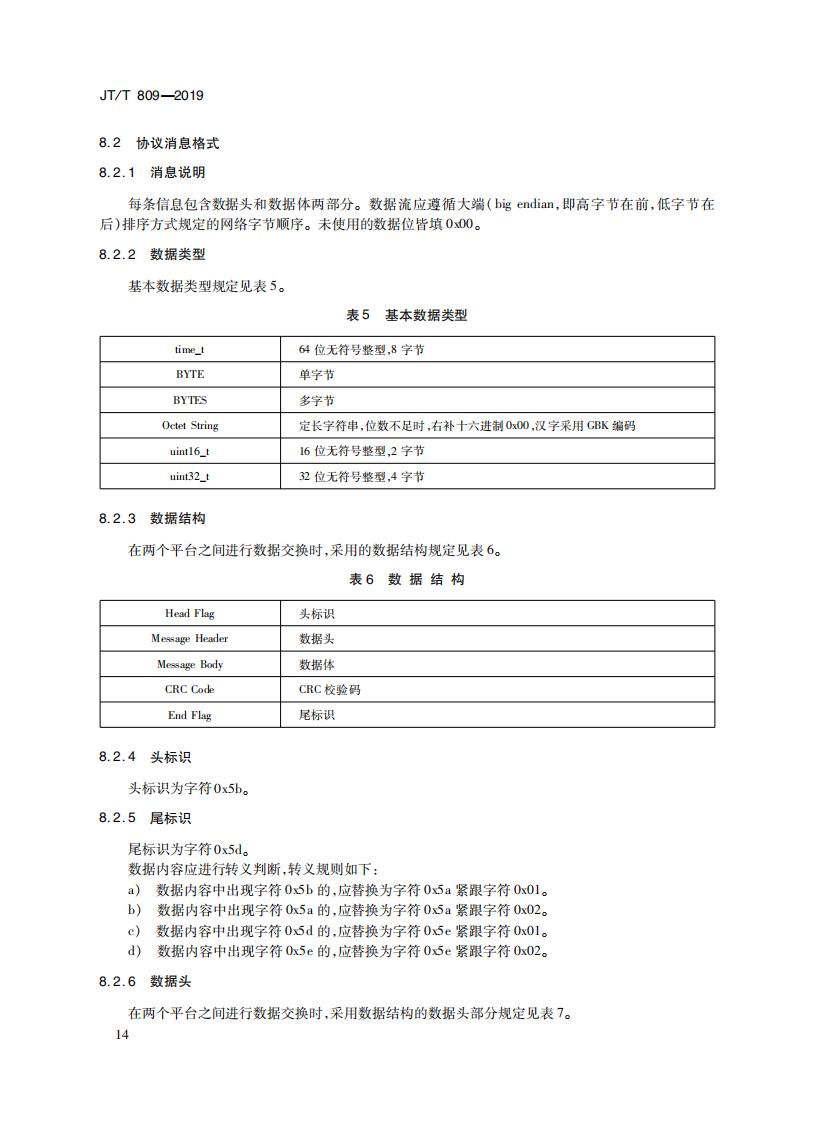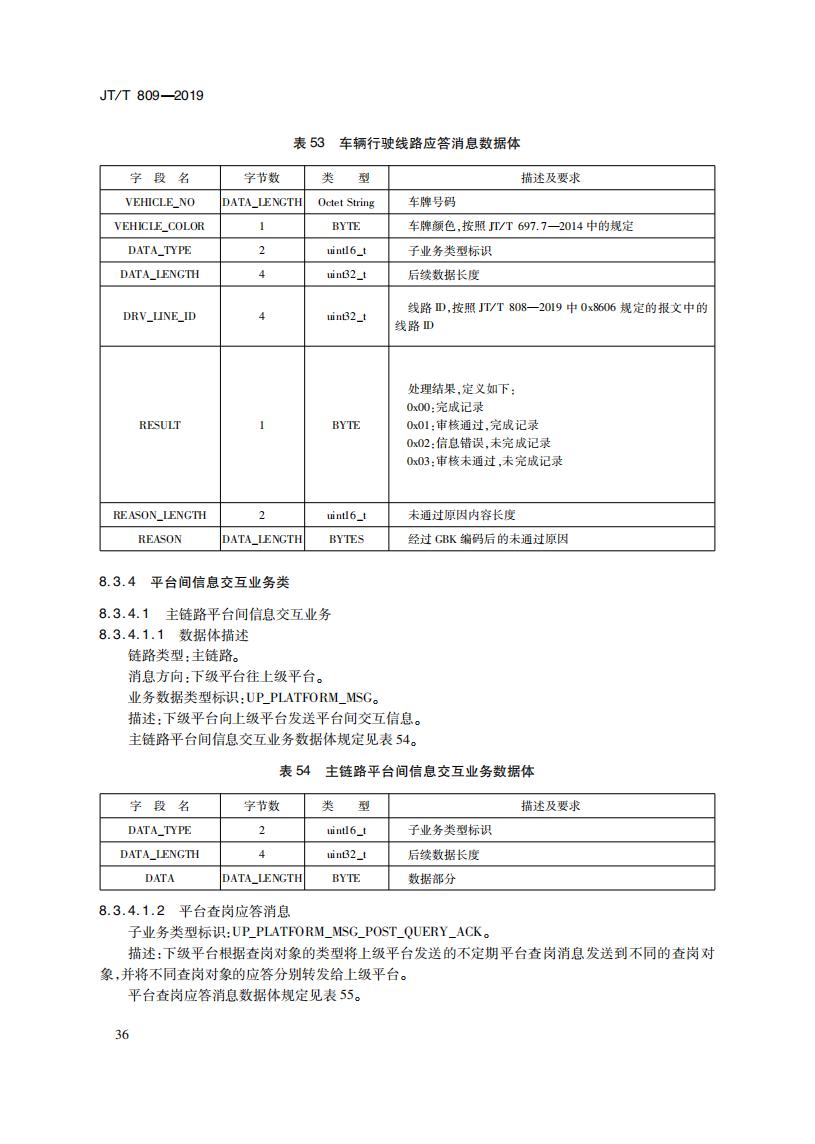 JTT809-2019 道路運(yùn)輸車輛衛(wèi)星定位系統(tǒng)(平臺(tái)數(shù)據(jù)交換)