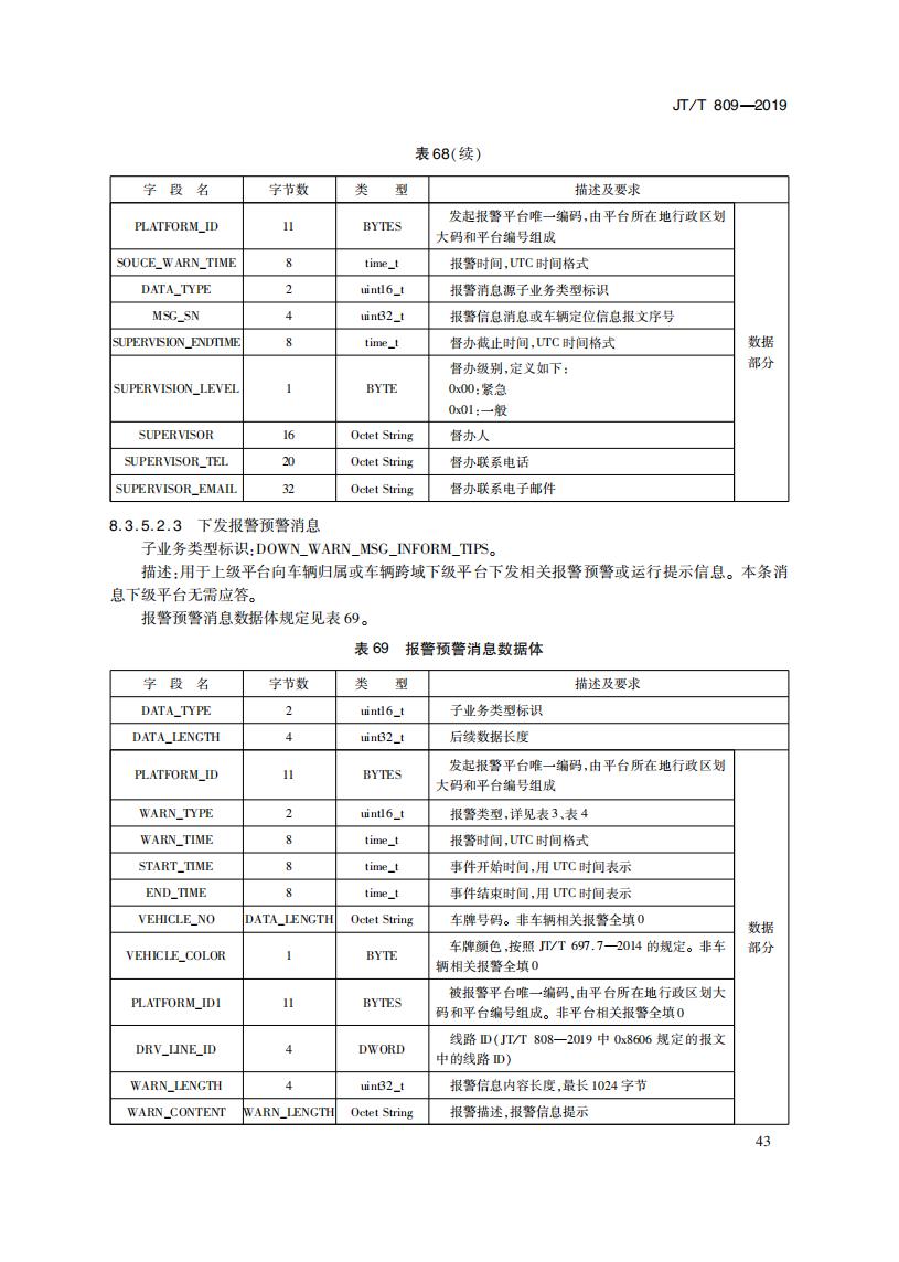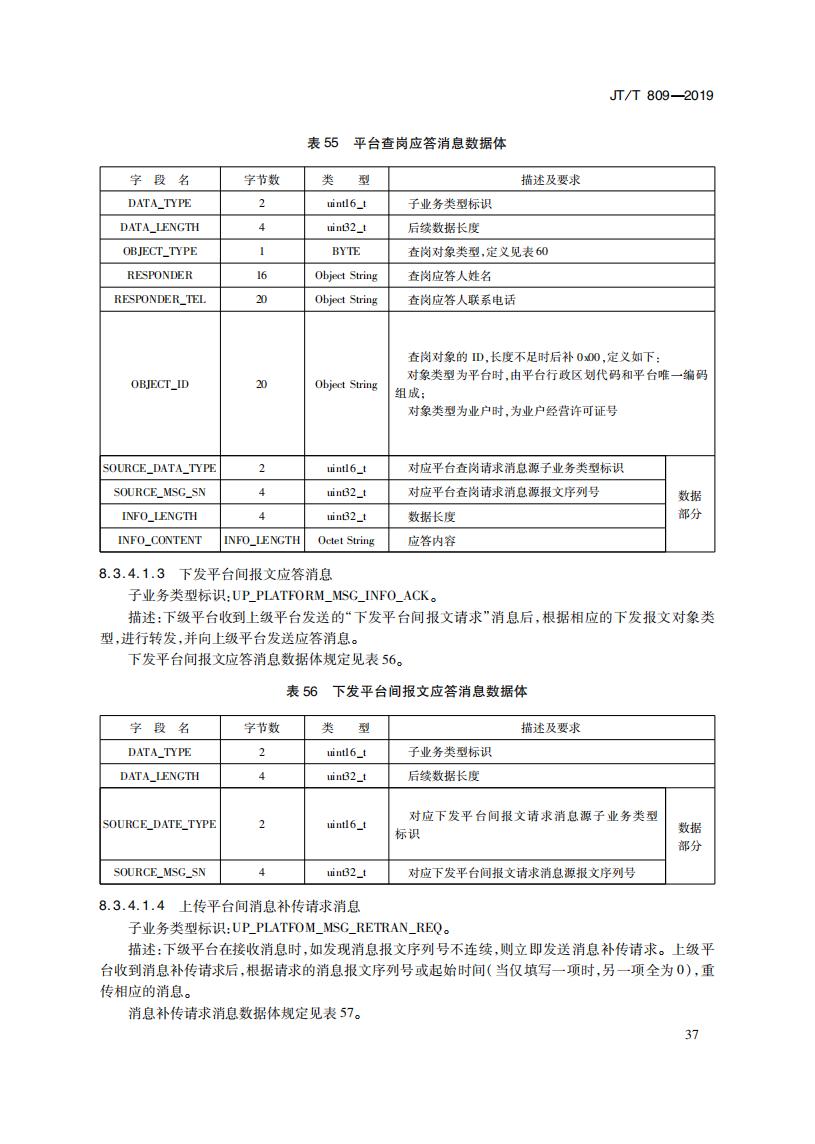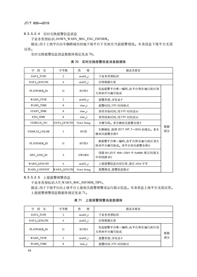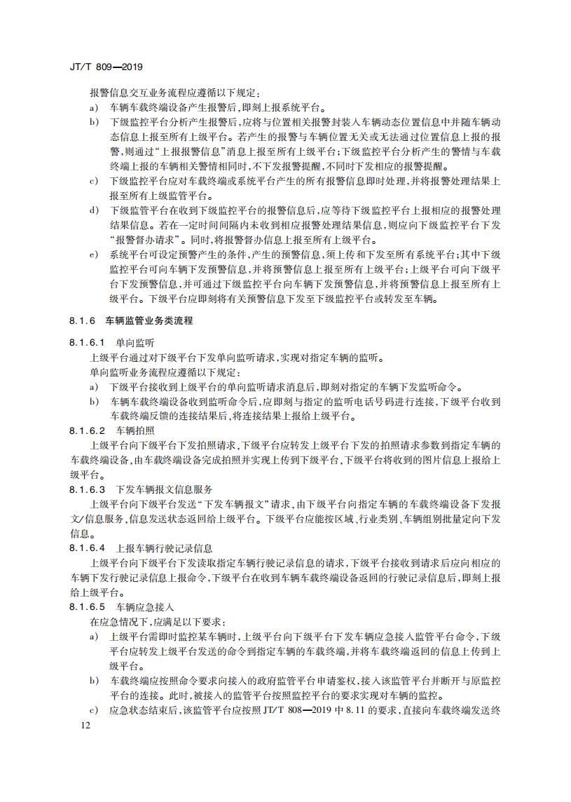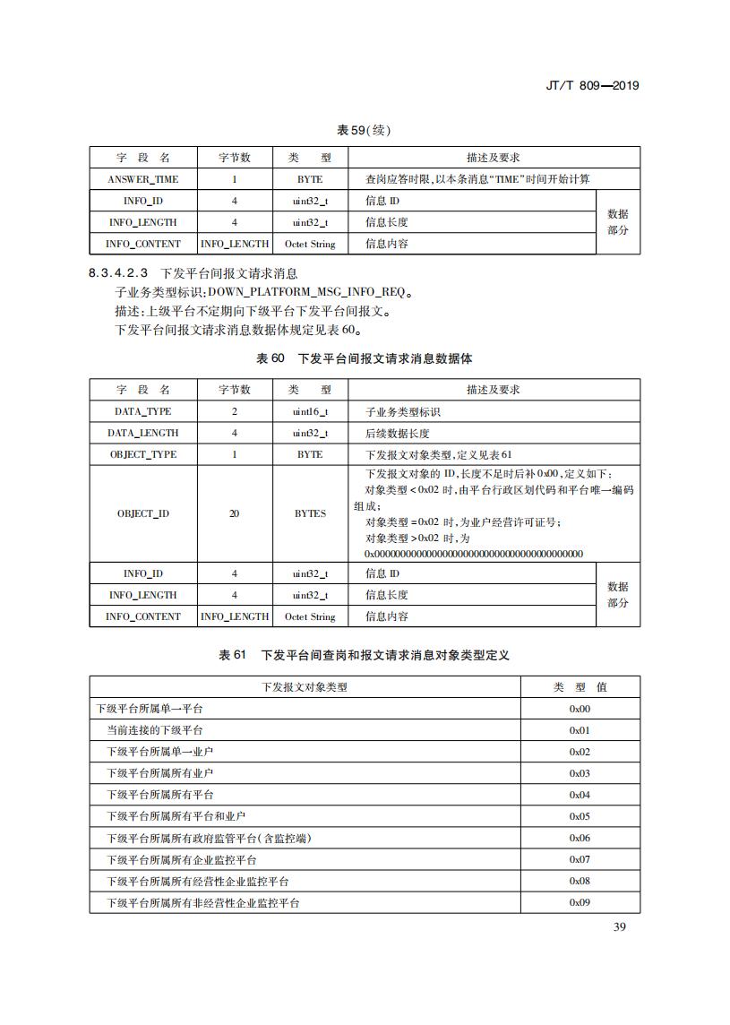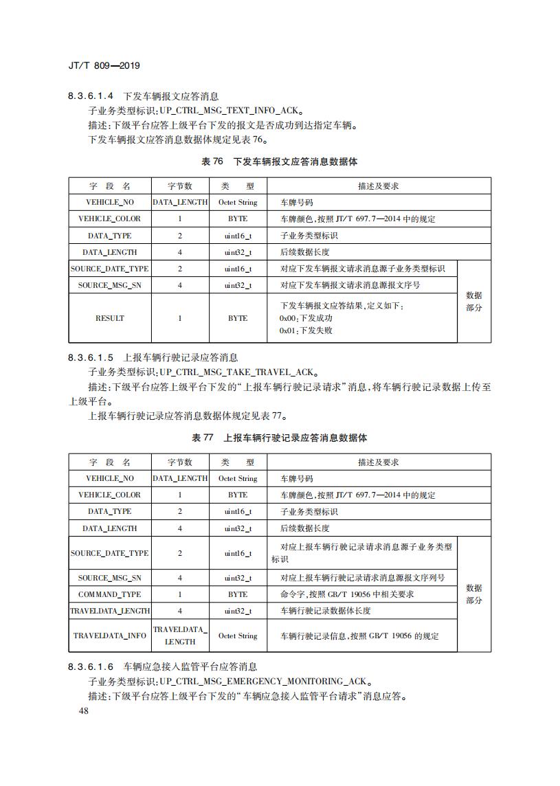JTT809-2019 道路運(yùn)輸車輛衛(wèi)星定位系統(tǒng)(平臺(tái)數(shù)據(jù)交換)