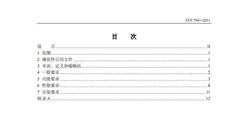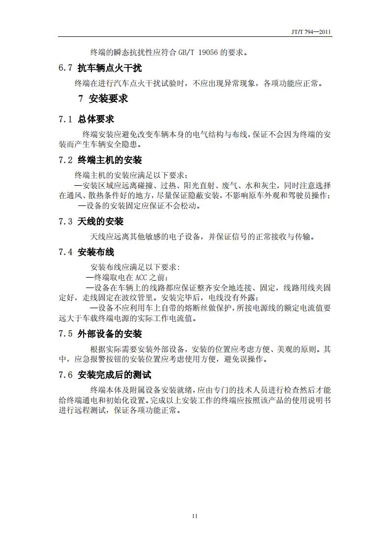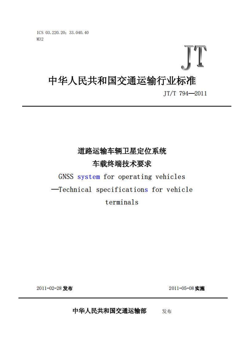 JTT794-2011 道路運輸車輛衛(wèi)星定位系統(tǒng)(車載終端技術(shù)要求)
