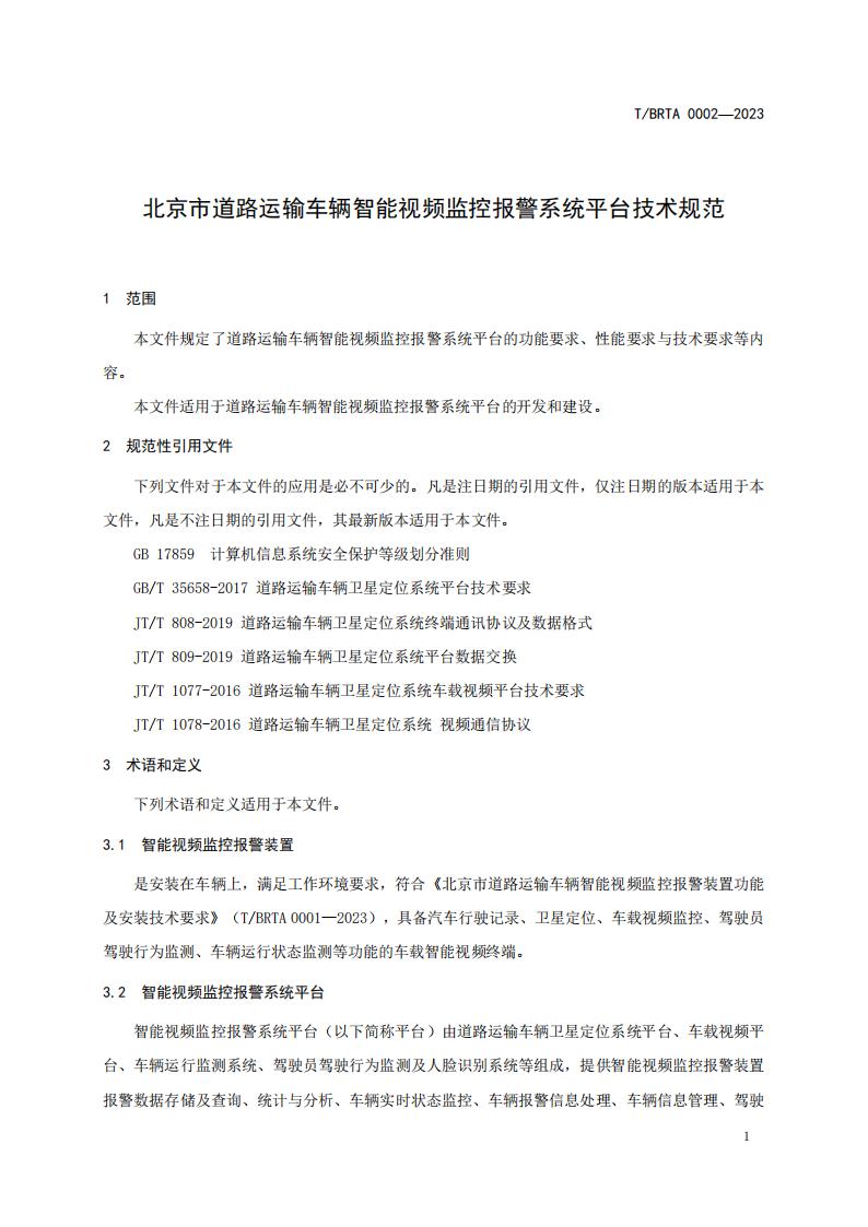 北京市 道路運輸車輛智能視頻監(jiān)控報警系統(tǒng)平臺技術規(guī)范
