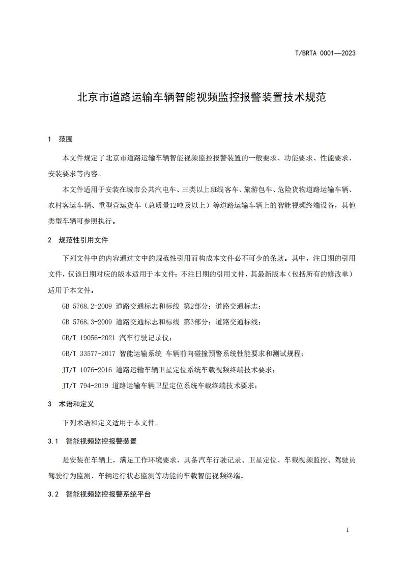 北京市 道路運(yùn)輸車輛智能視頻監(jiān)控報(bào)警裝置技術(shù)規(guī)范