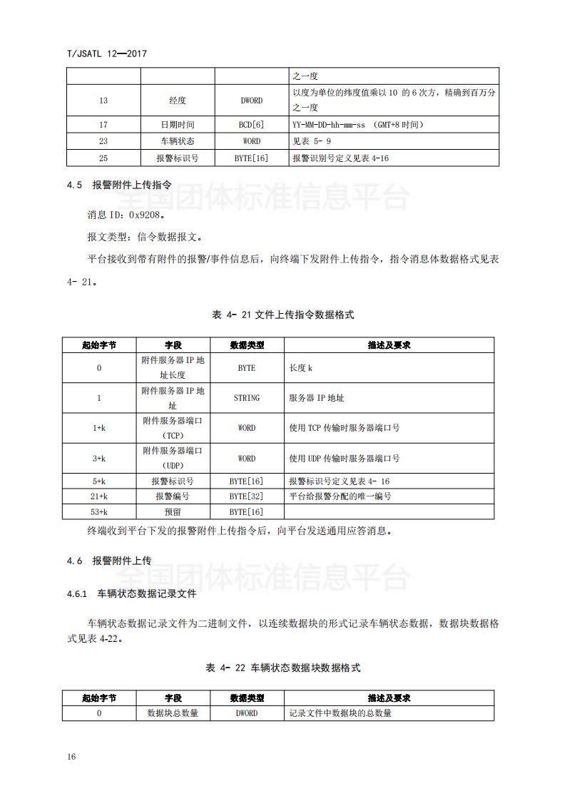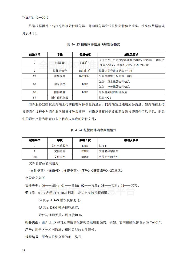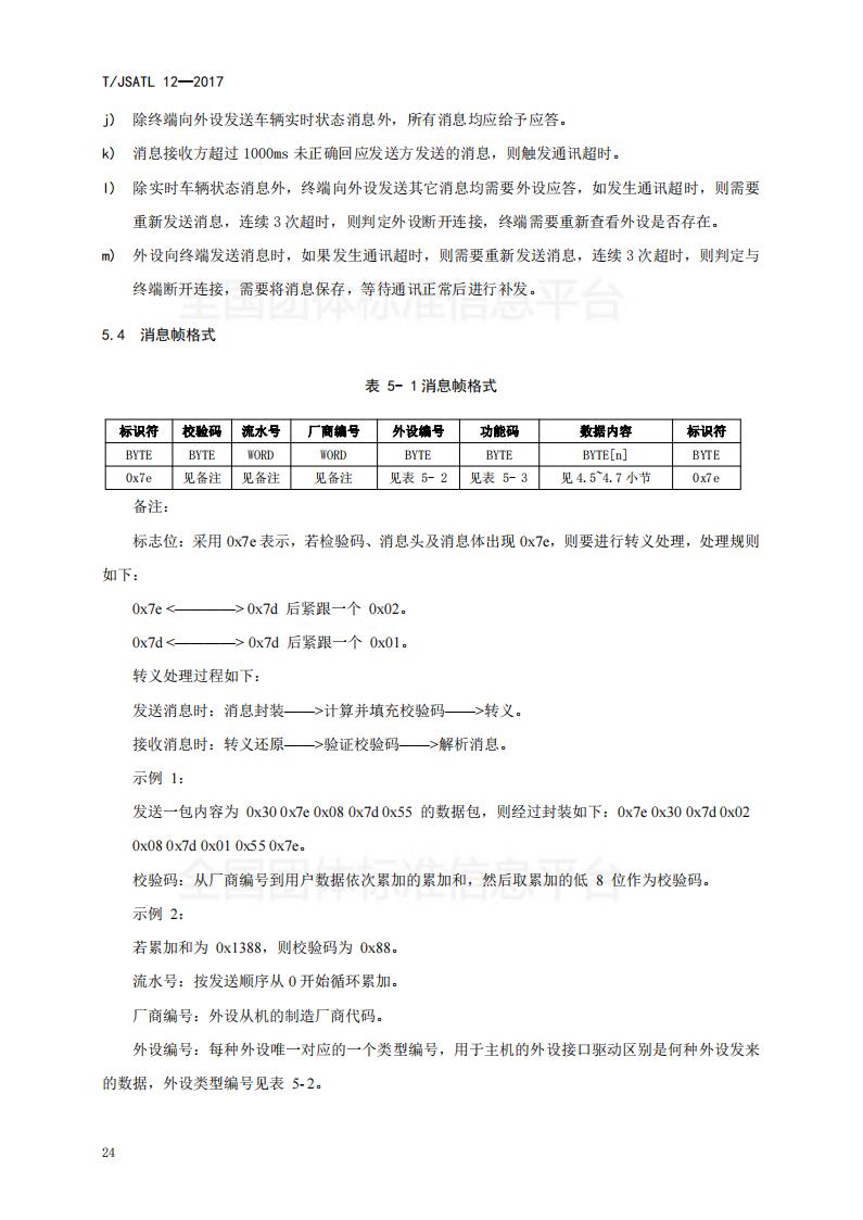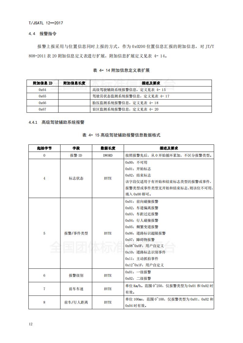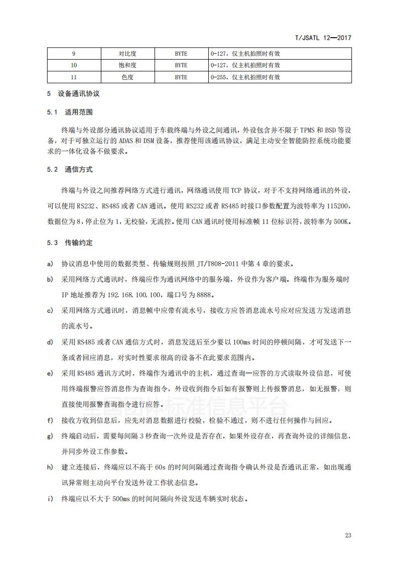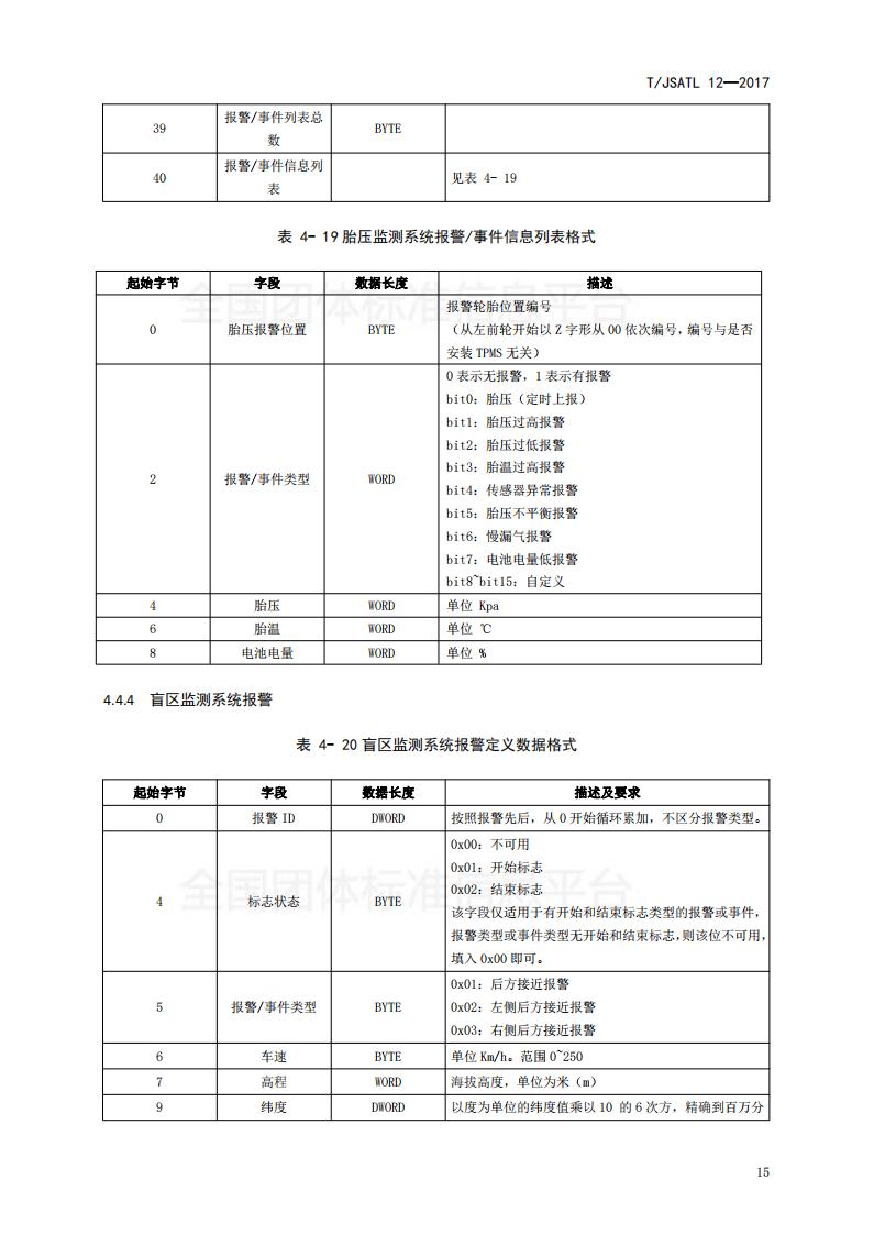江蘇省 TJSATL 12-2017 道路運輸車輛主動安全智能防控系統(tǒng)(通訊協(xié)議規(guī)范)