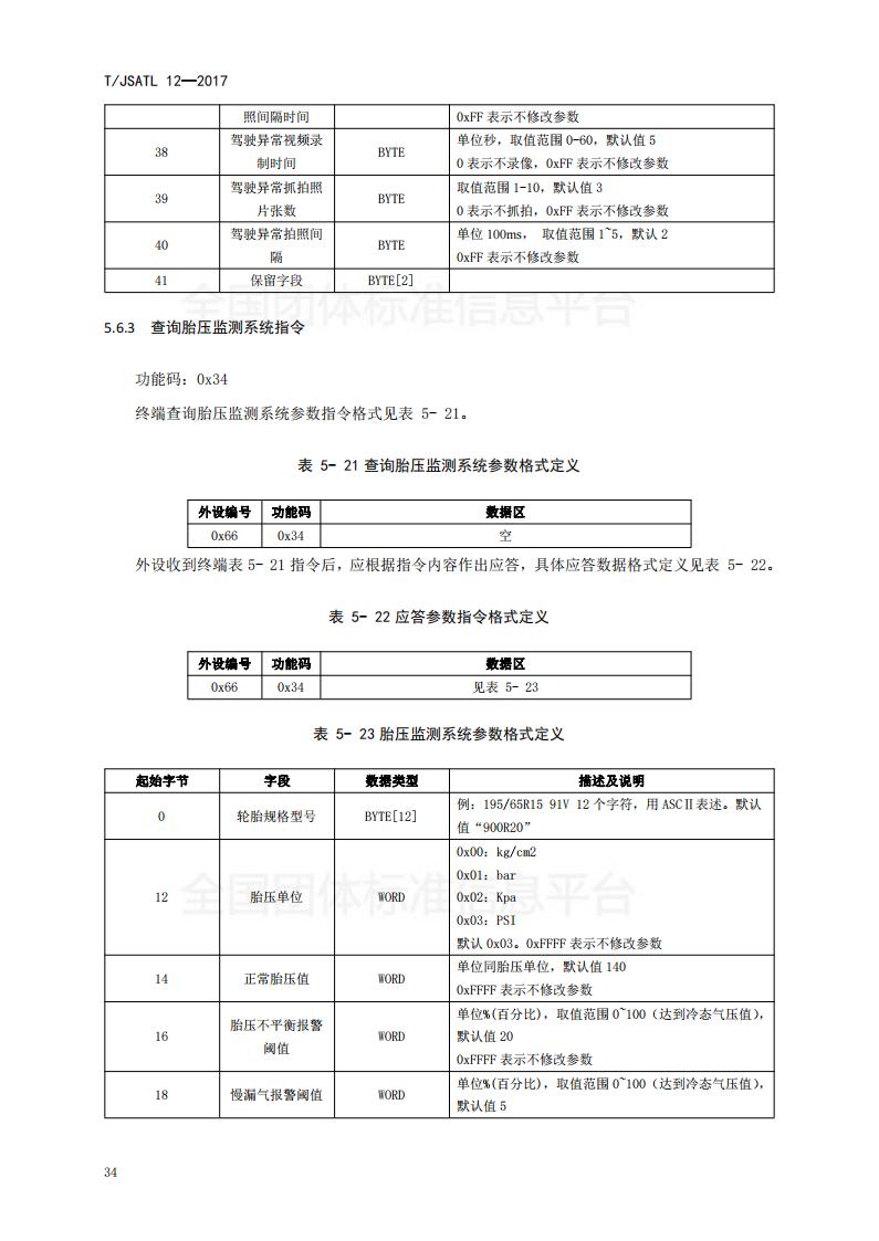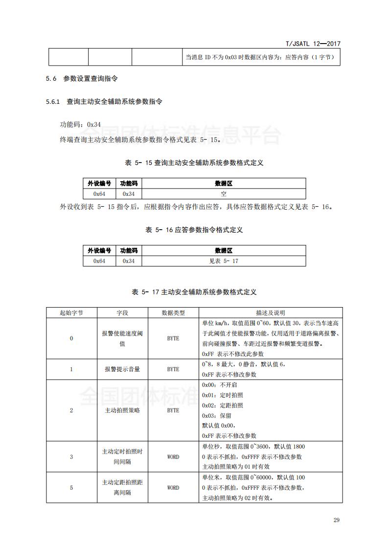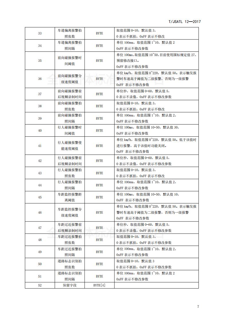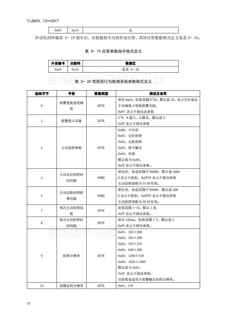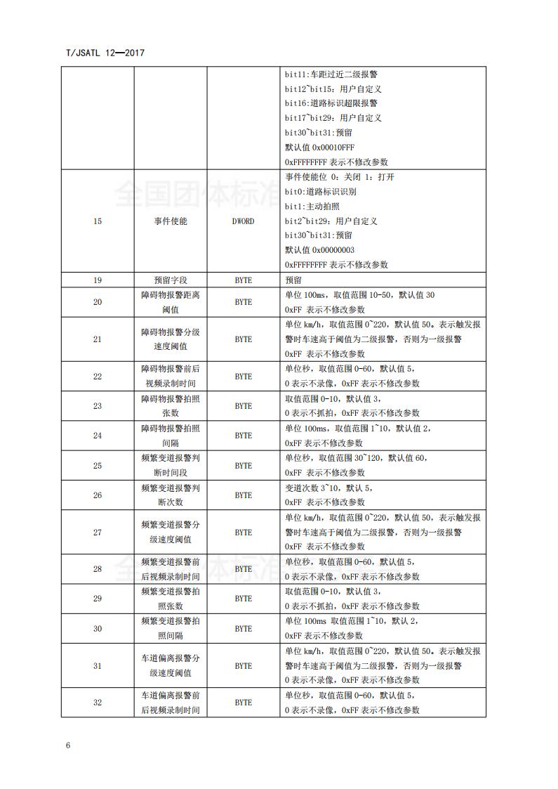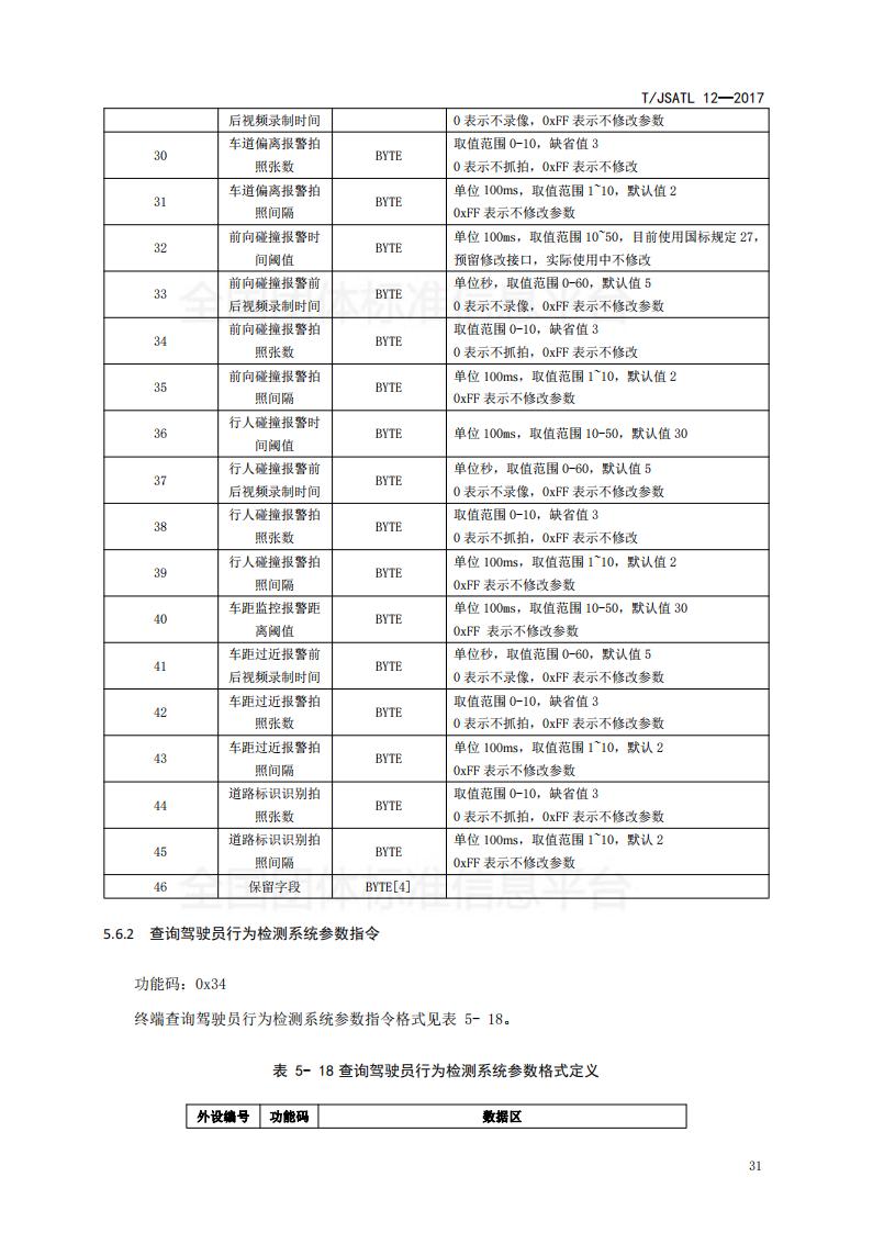 江蘇省 TJSATL 12-2017 道路運輸車輛主動安全智能防控系統(tǒng)(通訊協(xié)議規(guī)范)
