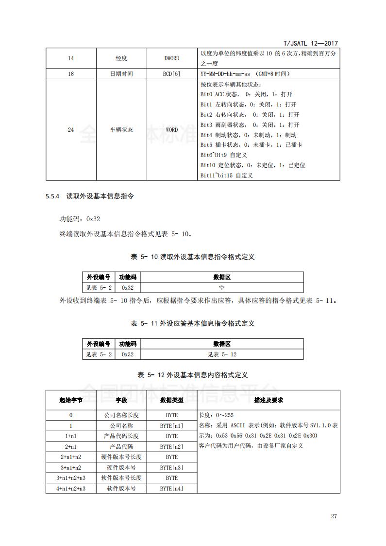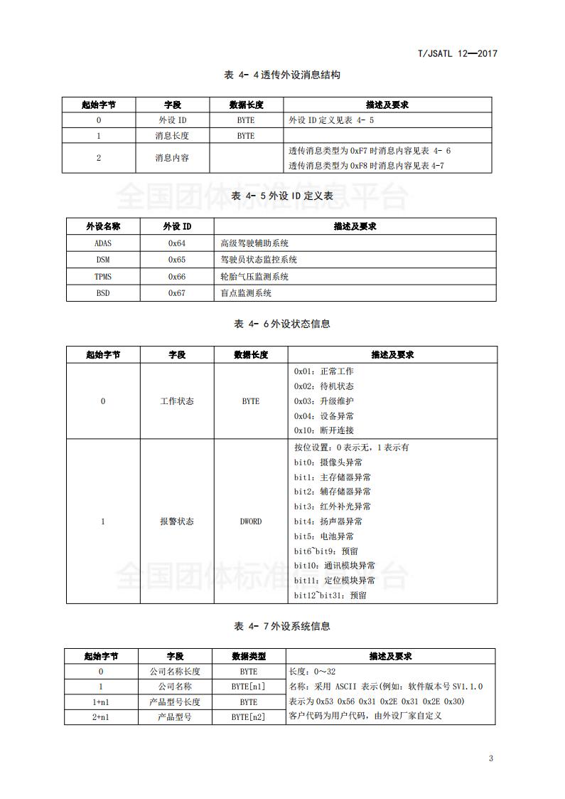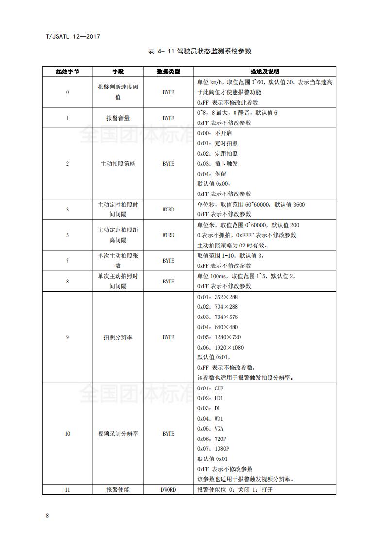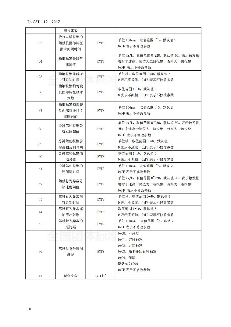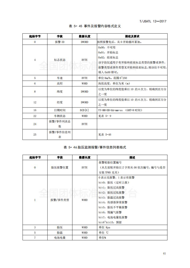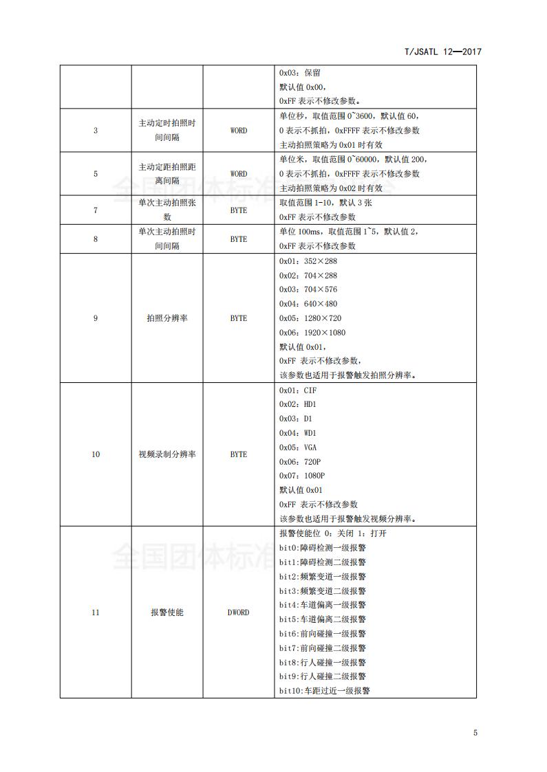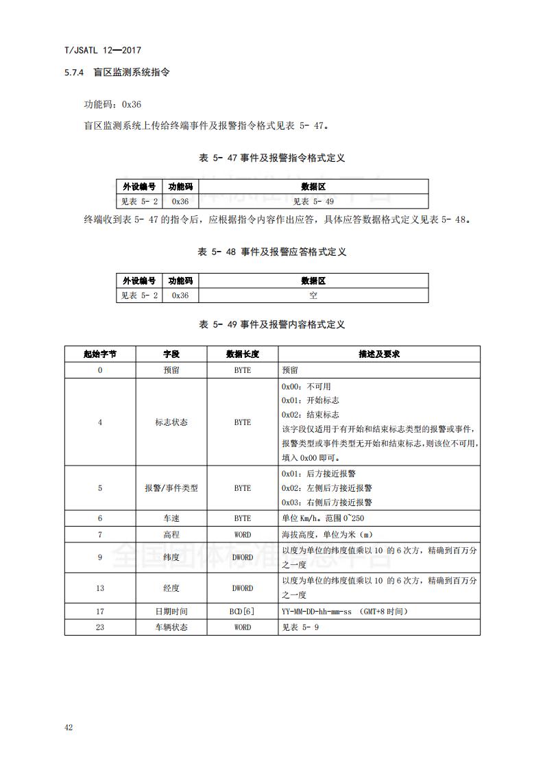 江蘇省 TJSATL 12-2017 道路運輸車輛主動安全智能防控系統(tǒng)(通訊協(xié)議規(guī)范)