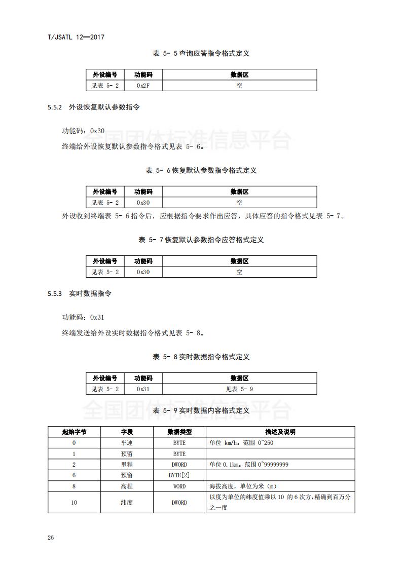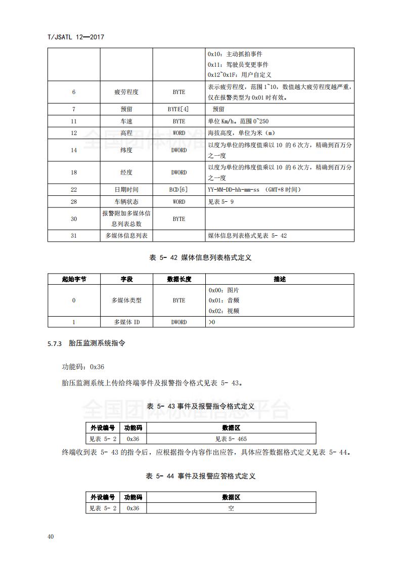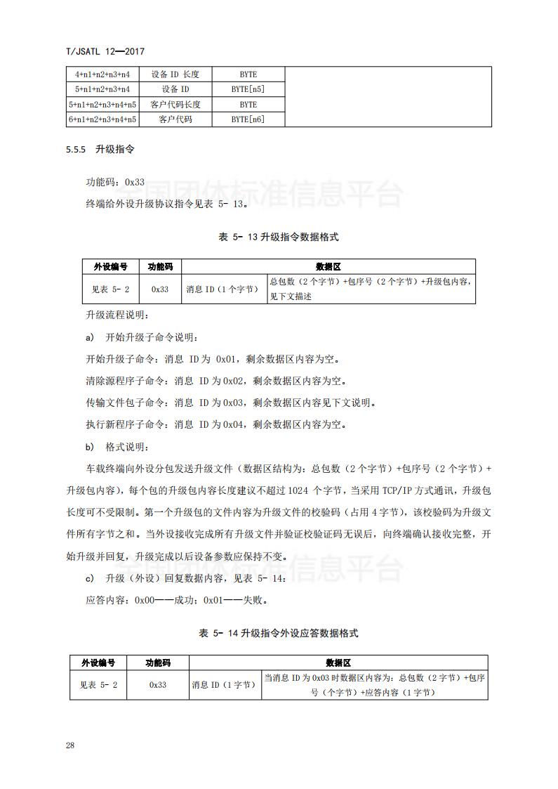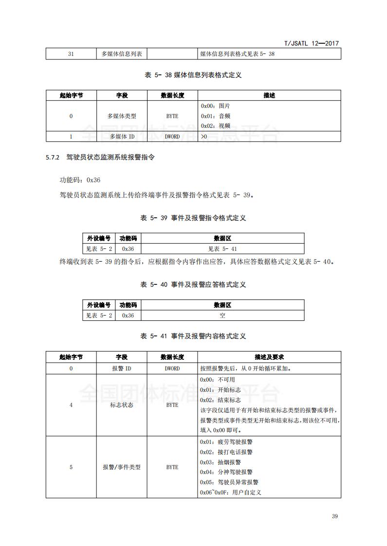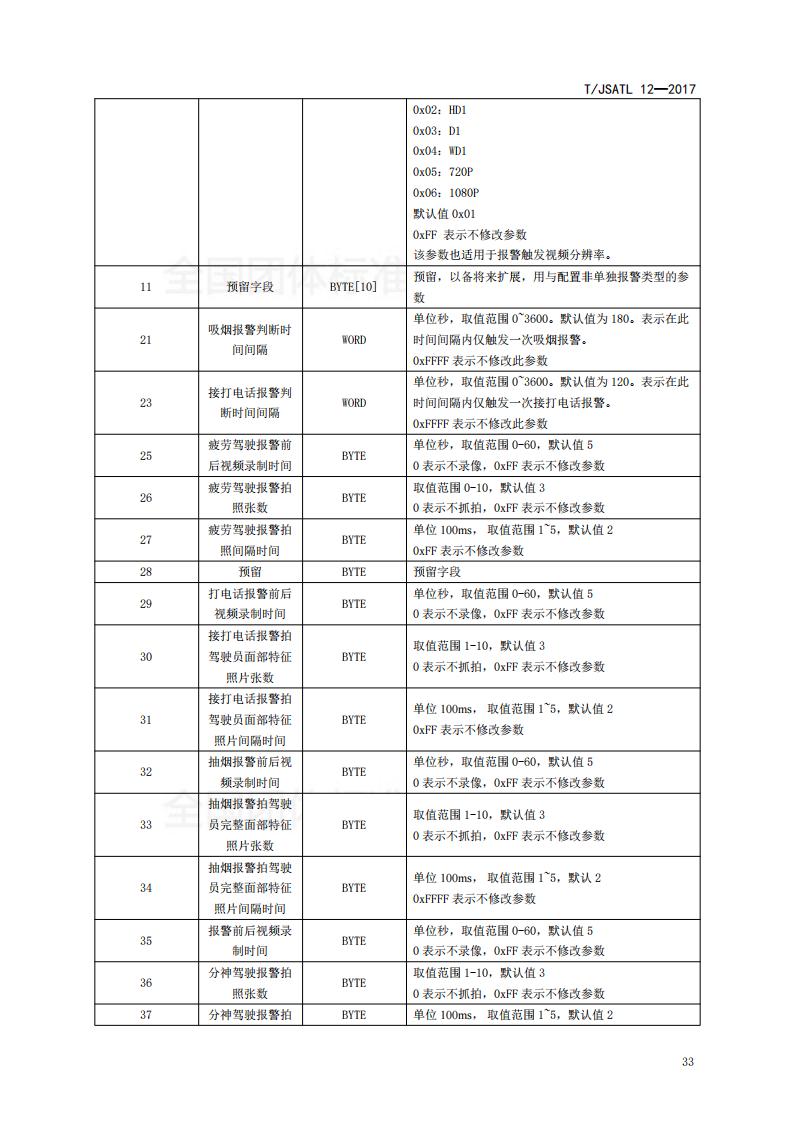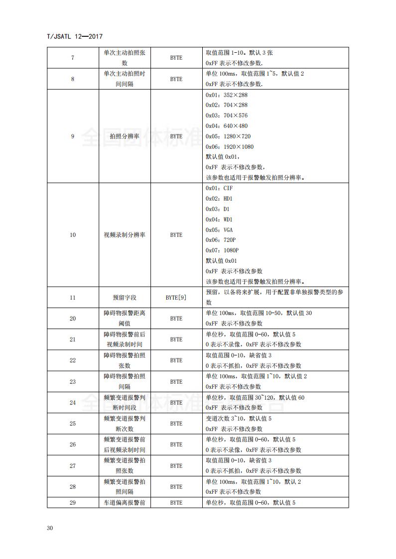 江蘇省 TJSATL 12-2017 道路運輸車輛主動安全智能防控系統(tǒng)(通訊協(xié)議規(guī)范)