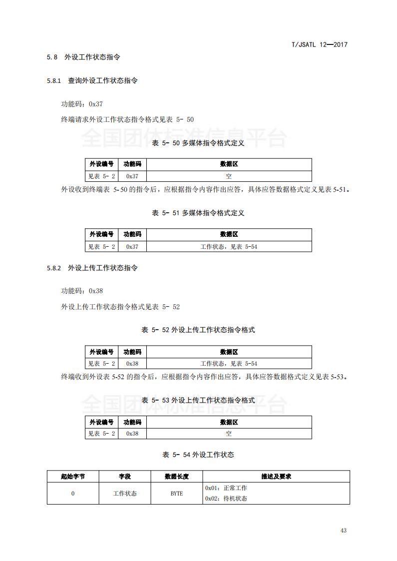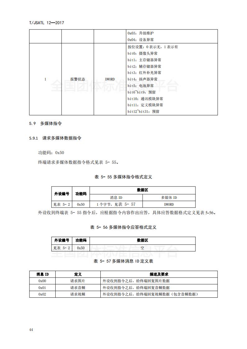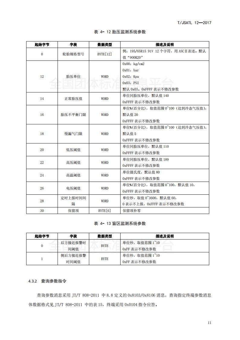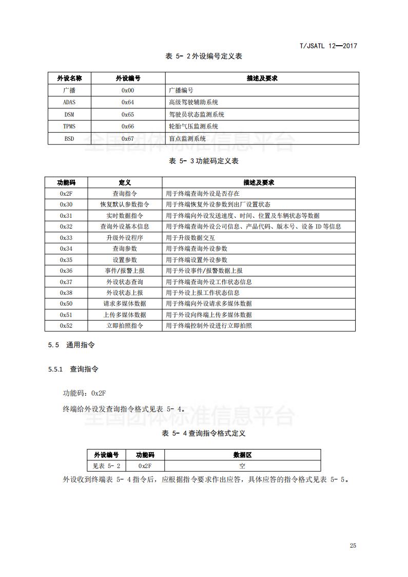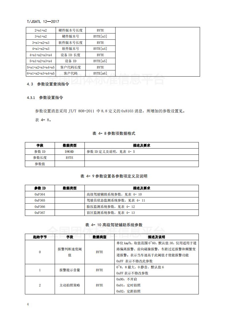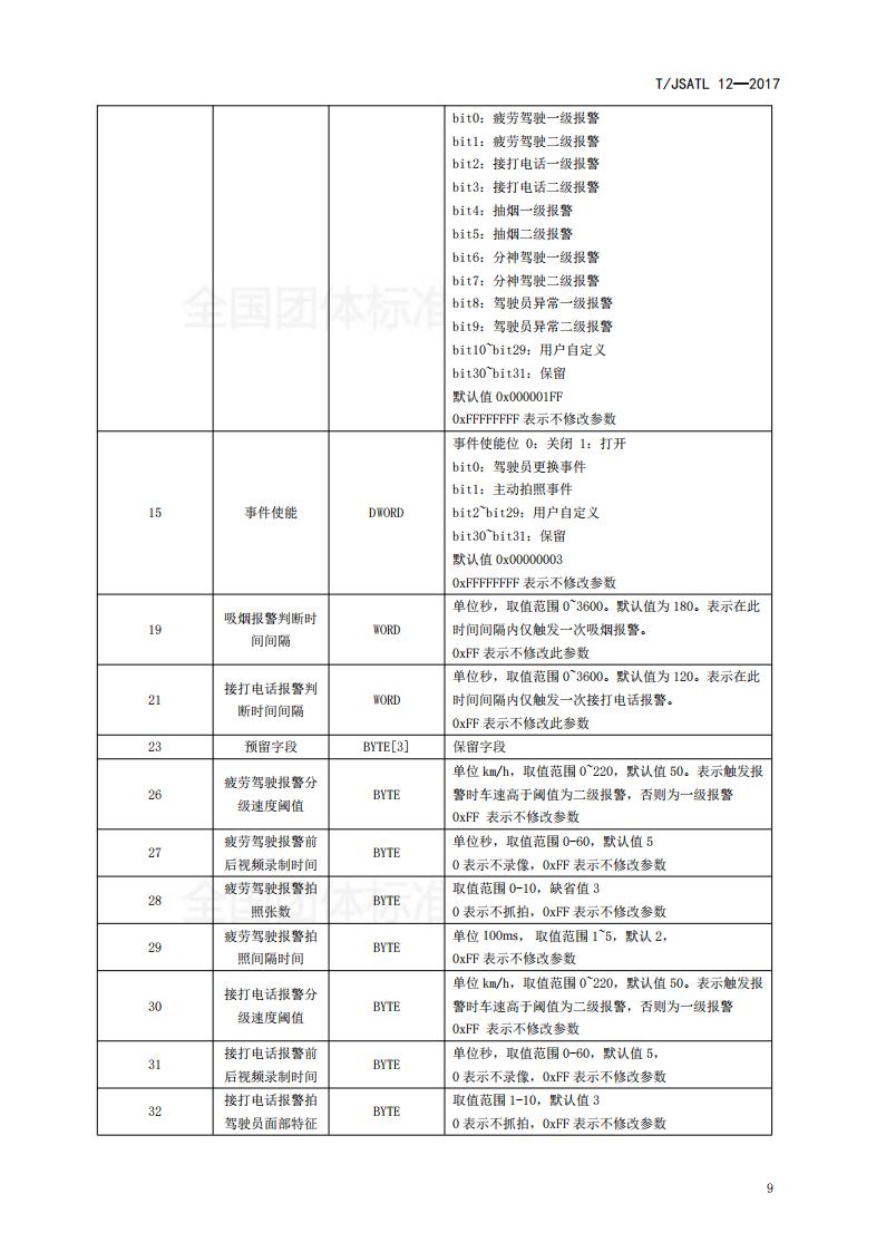 江蘇省 TJSATL 12-2017 道路運輸車輛主動安全智能防控系統(tǒng)(通訊協(xié)議規(guī)范)