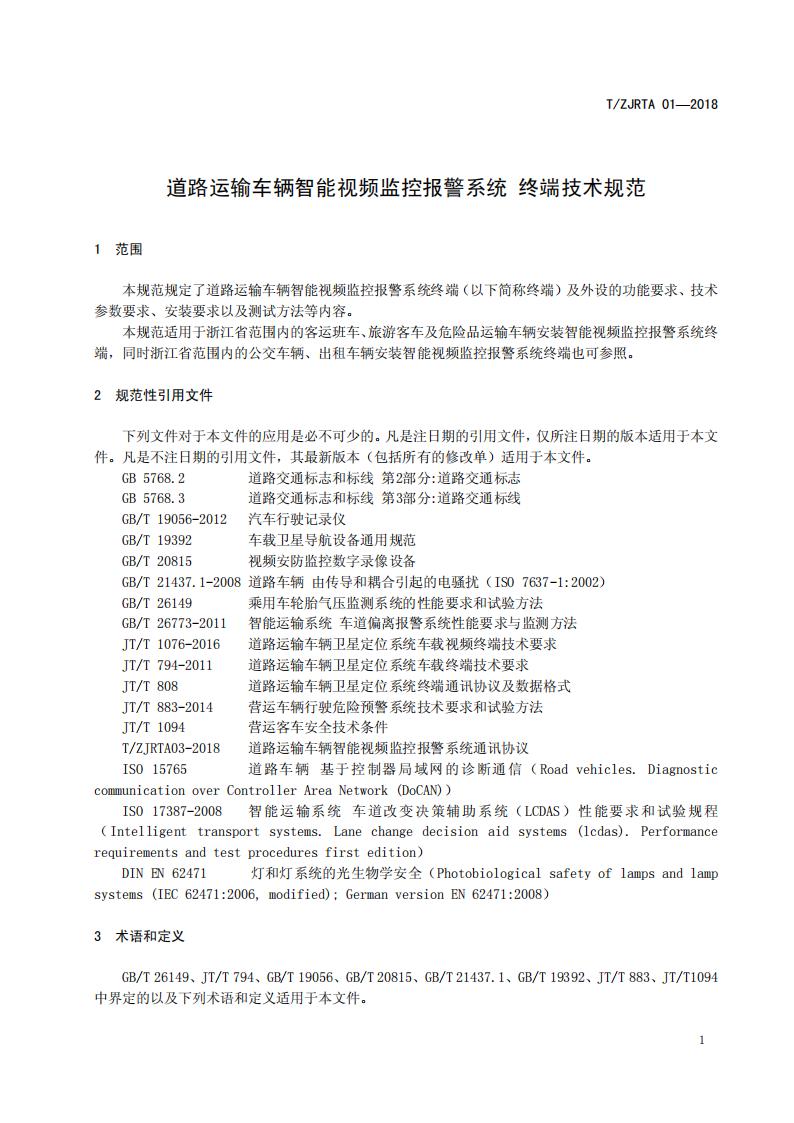 浙江省 TZJRTA 01-2018 道路運輸車輛主動安全智能防控系統(tǒng)(終端技術(shù)規(guī)范)