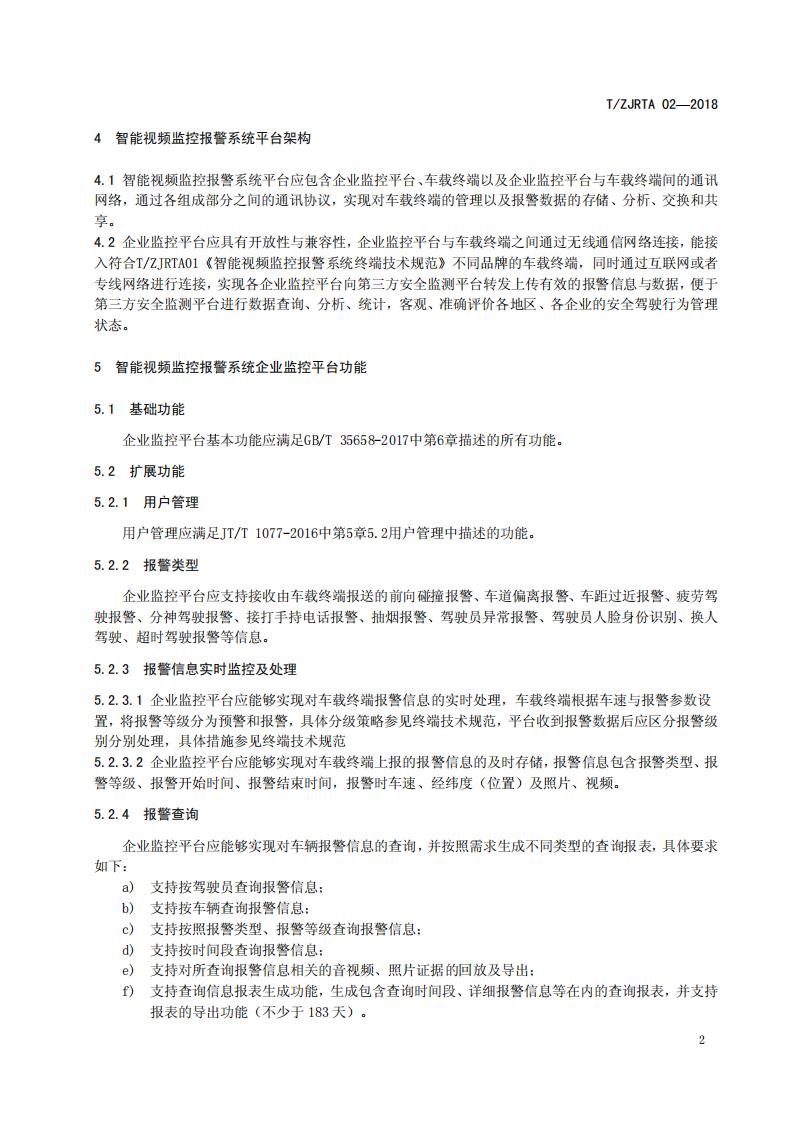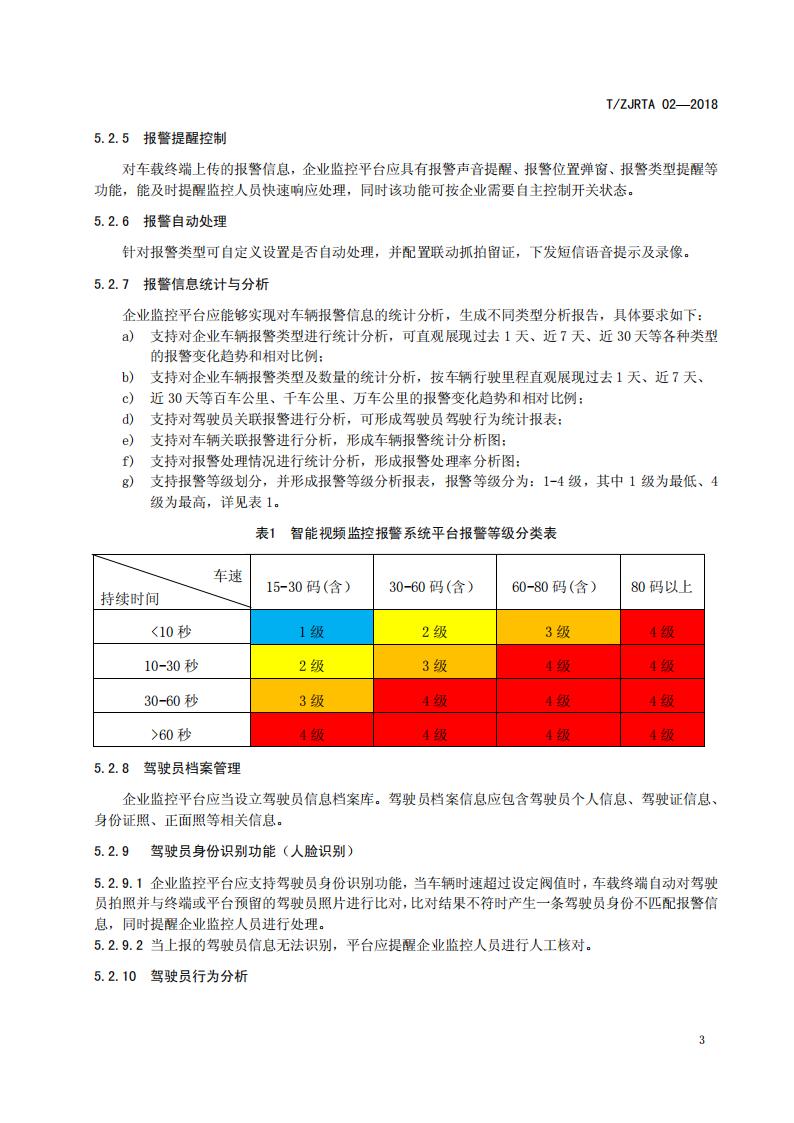 浙江省 TZJRTA 02-2018 道路運輸車輛主動安全智能防控系統(tǒng)(平臺技術規(guī)范)
