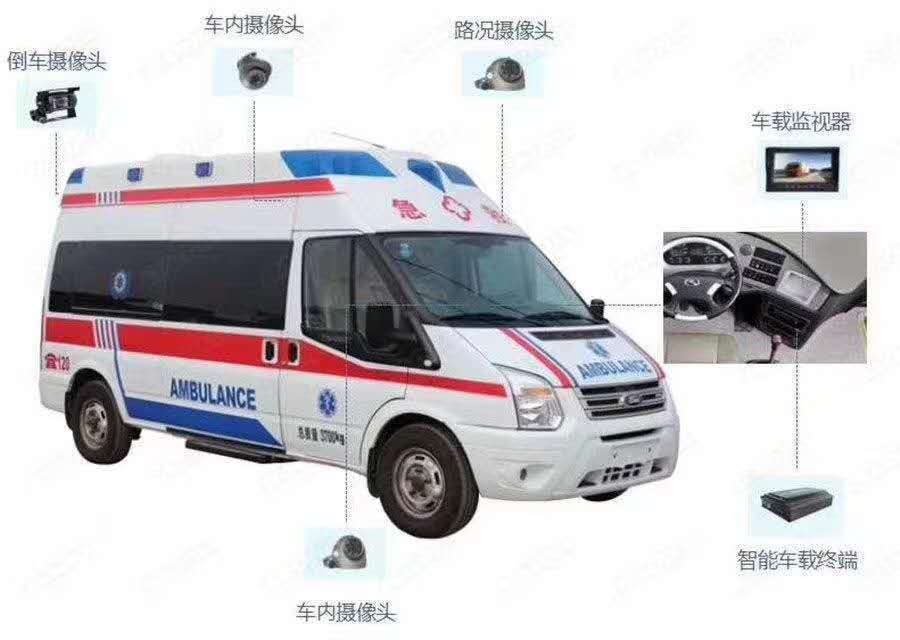 6.視頻攝像機(jī)和內(nèi)屏, 進(jìn)行視頻采集取證,一輛車最少需要安裝3-4個攝像頭,對車內(nèi)車外的各個方位進(jìn)行監(jiān)控??梢约皶r發(fā)現(xiàn)糾正駕駛員違規(guī)駕駛行為、消除駕駛員視線盲區(qū)帶來的安全隱患。跟車醫(yī)生的工作監(jiān)控。對于跟車醫(yī)生的工作情況的監(jiān)管監(jiān)控,是否符合醫(yī)院的安全規(guī)章制度執(zhí)行。醫(yī)護(hù)人員是否按規(guī)定進(jìn)行救治準(zhǔn)備工作等。減少醫(yī)患糾紛。緊急情況下,可通過觀看車內(nèi)實時視頻,指導(dǎo)救治。